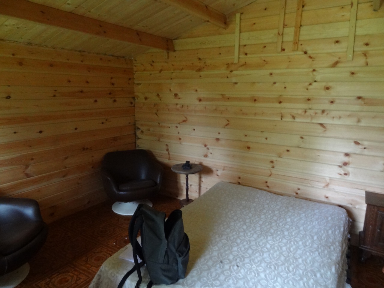 On commença par visiter le petit chalet qui s’avéra en très bon état par rapport au reste, le bois était sec et n’avait pas pourri. Il y avait quelques trace de mousse sur le toit mais sans plus :