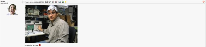 En ce qui concerne le terme « technochieur », si vous relisiez le topic vous verriez que c’est les personnes qui ont la même pathologie que moi qui ce font traités de ce terme et pas le contraire mais bon, passons …