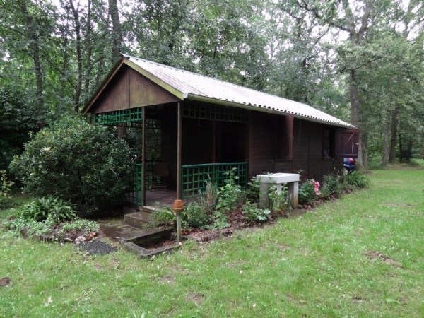 Je les suivi pendant une petite dizaine de minute, on passa par une sorte de digue ou il y avait dessus une route en bitume assez étroite pour finir sur un petit chemin de terre. La on arriva sur une barrière en bois qui bloquait une sorte de route forestière. Le propriétaire enleva cette barrière et on traversa une partie boisée pendant 50 mètre, et puis on arrive sur le terrain en question ou il y a une grande cabane en plein milieu, une petite caravane sur la gauche.