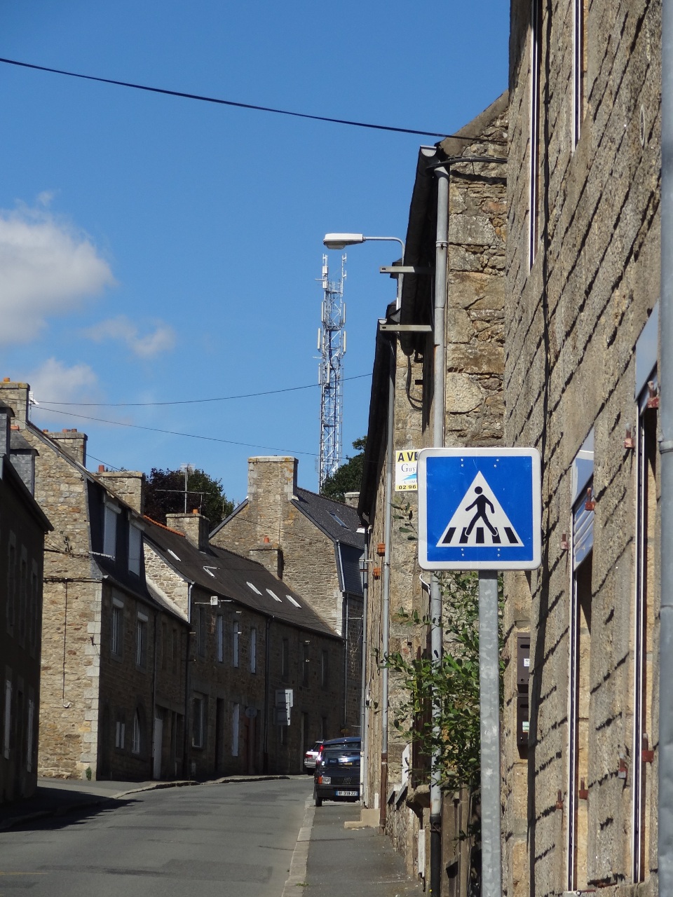 Je repart pour Guingamp mais entre temps j’ai un soucis avec ma petite fiesta, l’embrayage patine en 3 eme quand j’accélère un peu fort, c’est la série j’avais pas besoin de ça. Je tente néanmoins le rendez-vous sur Guingamp qui est quand même a 3/4 d’heure de route. finalement ma voiture a tenu le coup et j’arrive dans l’ancienne ville fortifié ou j’avais rendez-vous avec un agent immobilier. Malheureusement le bien que j’avais repéré avait été vendu mais il en avait un autre qui pouvait m’intéresser. C’était un ancien bar qui avait été divisé en deux biens, le hic c’est que le bien qui était vente n’était pas raccordé au réseau d’eau, ni au réseau Electrique, il fallait tout refaire, la toiture était a refaire, enfin bon c’était pas le top et en repartant j’ai repéré un beau pilonne avec plein d’antenne relais.
