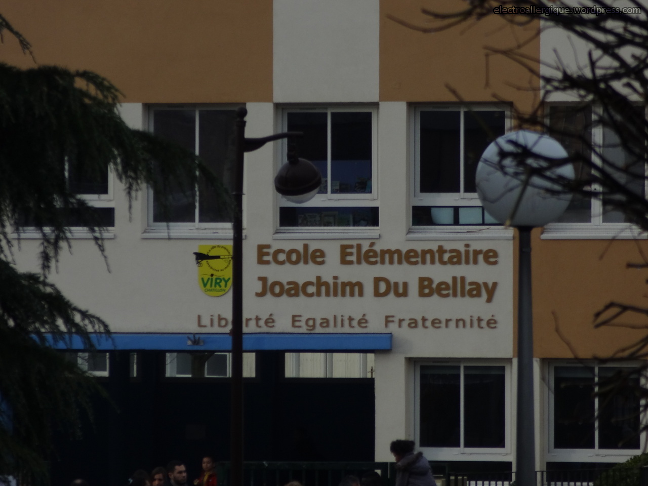 Ça doit être ce que doivent ce dire les opérateurs parce que rien n’est fait, en tout cas, aucune volonté forte des opérateurs n’est faites pour protéger les enfants et pire encore comme FREE qui font des campagnes publicitaire sur ce créneau : Merci Free … no comment . Et cela ce voit sur le terrain puisque lors de mes petites escapades pour faire les photos des différents émetteurs pour mon article les antennes relais : ces faux arbres qui cachent la forêt je suis tombé sur l’école élémentaire Joachim du Bellay à Viry Chatillon où un beau pilonne avec une pléthore d’émetteurs, TNT, GSM, UMTS, tout y est ou presque et ce à moins de 100 mètre d’une école maternelle, je vous laisse juge :