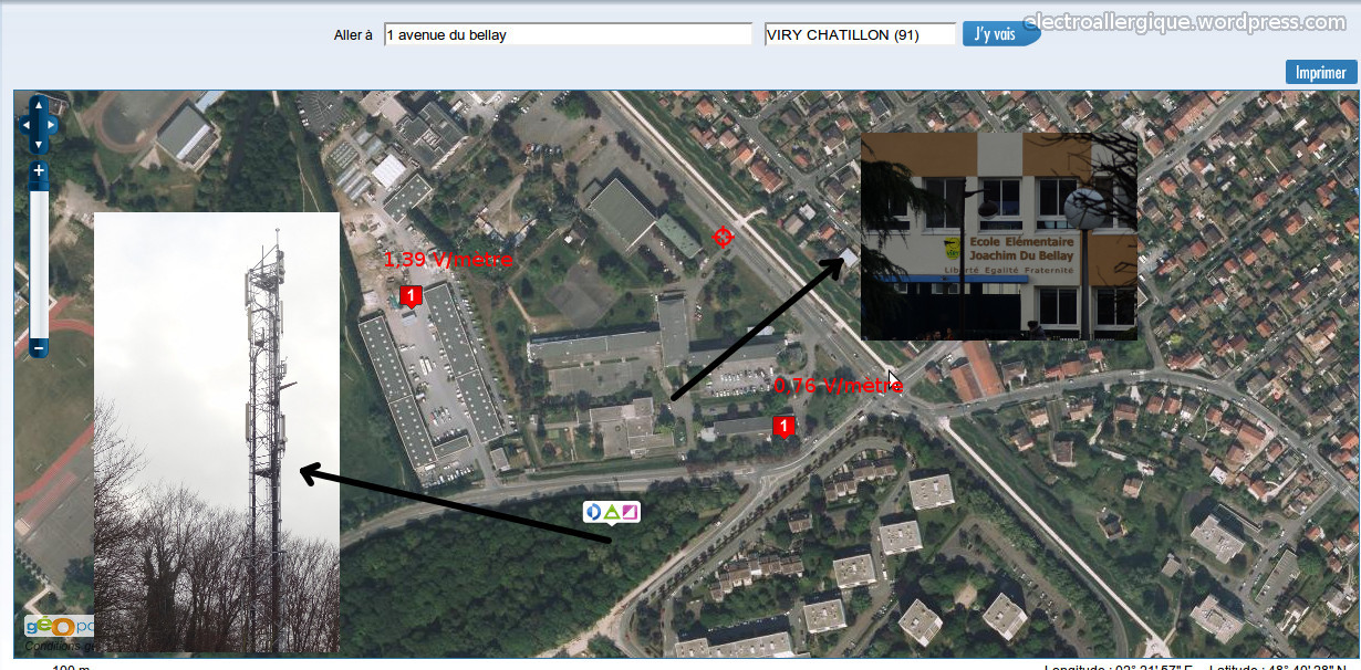2. Les antennes cellulaire (2G, 3G) de Viry Chatillon ne sont pas pointées directement sur l’école. Tu peux d’ailleurs le vérifier sur le site de l’ANFR, les azimuths des antennes sont indiqués.