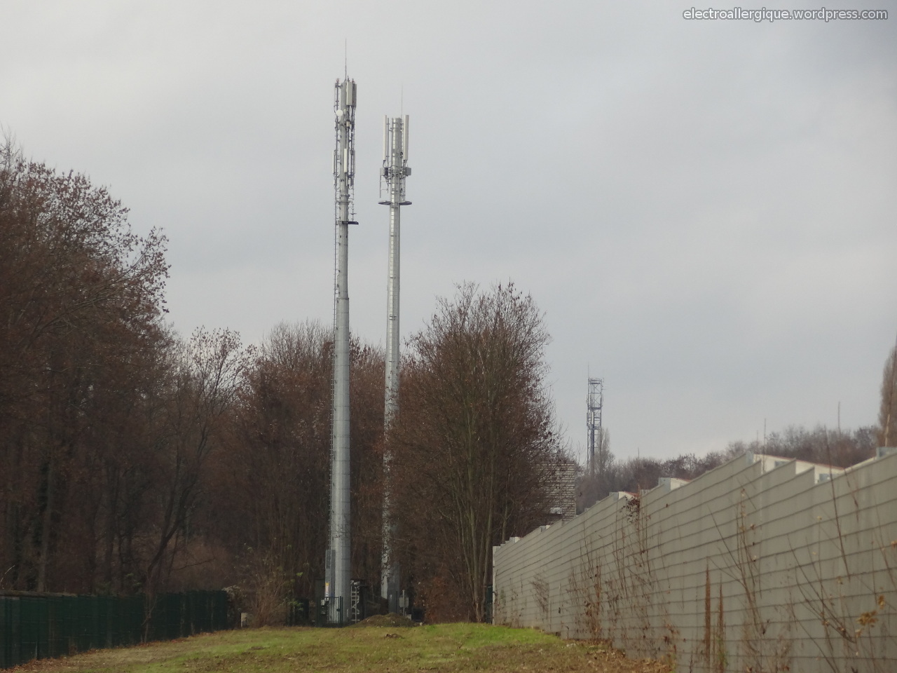 Parmi les thèmes abordés dans ce rapport on retrouve notamment l’acceptabilité sociale des technologies sans fil qui est qualifié de médiocre par les auteurs qui considèrent qu’une partie de la population est défiante par rapport à ces technologies et pointent du doigt les agissements des opérateurs de téléphonie mobile. Outre le fait que la population n’a pas choisi d’être exposée à des champs électromagnétiques sans connaissance sur les niveaux d’exposition et les effets potentiels sur la santé qui pourraient déjà être de bonnes raisons pour se méfier des radiofréquences, il règne une certaine anarchie au pays des antennes-relais un peu à l’image de ces deux pylônes prêt de l’A6 à moins de quelques centaines mètres l’un de l’autre …