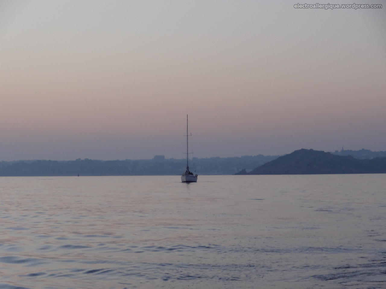 Au final durant l’aller-retour entre Paimpol et Plougasnou nous avons parcouru 150 miles nautiques pendant cinq jours. Nous avons eu un temps magnifique pour un mois de juin, à peine une journée où nous avons eu un petit crachin breton. Mais tout à une fin et nous avons fini la dernière journée à prendre le repas dans le Bateau de Ludovic qu’il est en train de retaper avec pour projet de faire une transatlantique. C’est l’heure de ce dire adieu, j’ai eu un petit pincement au cœur en quittant l’équipage de Karabine mais il faut que je continue ma route, je n’ai pas encore trouvé de solution à l’électrosensibilité mais la voile aurait pu être une partie de la réponse si seulement j’avais eu assez de temps pour approfondir mes connaissances dans ce domaine, ce qui risque de ne pas être le cas car mes acouphènes vont devenir de plus en plus intenables dans les mois qui viennent. L’idée de rester dans un camping-car au fond d’une forêt en plein hiver ne m’inspire pas des masses, mais c’est soit ça, soit je quitte la France.