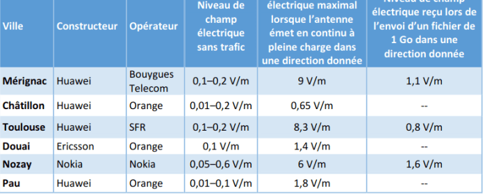 Maj 15/05/2020 : Comme je l’avais présumé, il y a une forte disparité dans certains cas entre une antenne relais non sollicitée et une antenne en pleine charge, l’ANFR a sortie un rapport le 10 mars dernier sur l’exposition engendrée par la 5G dans la bande de fréquences des 3.5Ghz et voici les résultats :