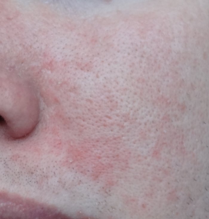 J’ai contracté cette pathologie vers 12-13 ans. Elle se situe sur le visage, au niveau du nez, du front et des oreilles. C’est une maladie qui est, a priori, génétique dans mon cas et qui se déroule en plusieurs phases. Dans un premier temps, la peau devient rouge et des démangeaisons apparaissent au niveau des rougeurs. Ensuite, des squames apparaissent (peau morte) ce qui fait qu’on a l’impression que la peau est sèche mais c’est dû à la maladie. Ensuite si l’exposition est continue, les deux premiers cycles se chevauchent, les rougeurs s’étendent et la perte de peau est de plus en plus importante. Si au contraire l’exposition est limitée, la peau redevient à peu près normale et ça recommence à chaque nouvelle exposition. Lors d’une exposition ponctuelle, ça donne un cycle qui dure 3 jours entre l’apparition des rougeurs jusqu’au renouvellement de la peau. Psychologiquement c’est super dur à vivre, surtout vis-à-vis du regards des autres mais bon j’avais trouvé une parade, lavage de la peau au head & shoulder dilué, en même temps que mes cheveux et juste après de la crème hydratante Aderma en sur-couche sur les rougeurs avant de m’endormir tous les trois jours.